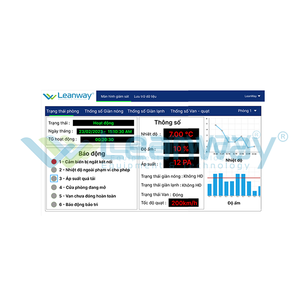 + Giám sát thông minh hệ thống làm lạnh, cảnh báo an toàn cho người vận hành quản lý rủi ro quá trình vận hành, theo dõi trực quan hóa các thông số của hệ theo dạng báo cáo cũng như biểu đồ: Nhiệt độ, độ ẩm trong phòng, dòng, áp suất, công suất của hệ thống, áp suất của dàn nóng, dàn lạnh.
