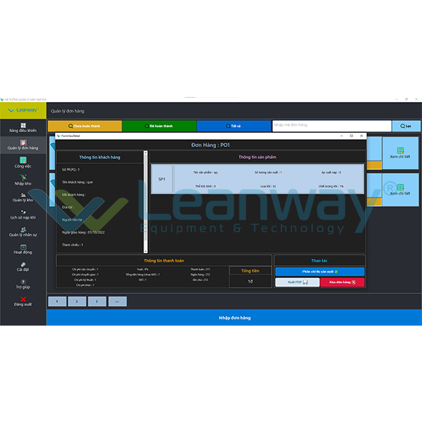 – Tạo yêu cầu xuất kho cho đơn hàng. Tạo phiếu xuất kho cho đơn hàng Scan nhãn các bình theo đơn hàng.