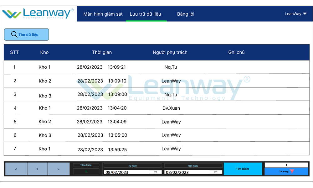 – Ghi nhận các hoạt động và thay đổi trong điều kiện môi trường trong kho để giúp người dùng dễ dàng theo dõi quá trình quản lý kho.